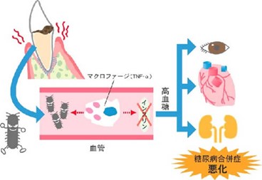 糖尿病は歯周組織の抵抗性を減弱させる代謝疾患であり、以下の症状を示していきます。