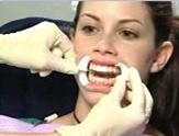 お口を開けたままで固定するマウスリトラクター(開口器)を付けます。