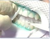 歯茎および唇を保護してから、歯の表面にホワイトニングジェルを塗布します。