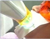 ホワイトニングジェルをふき取り、新しいホワイトニングジェルを塗布して、光照射を行います。